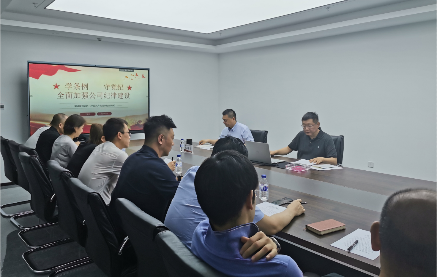 王喜東同志號召公司全體黨員干部要帶頭學習,力戒形式主義,切實把黨紀學習教育抓出實效,要縱深推進全面從嚴治黨,把從嚴管理監督和鼓勵擔當作為高度統一起來,提振精氣神、彰顯新作為,共同為公司改革發展做出應有的貢獻!